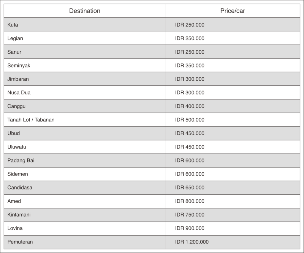 Need to get to the airport? We arrange timely pickups from your hotel or other locations in Bali, ensuring you reach the airport with ample time for your flight.Group and Family Transfers